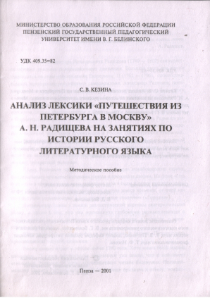 Кезина С. В. Анализ лексики "Путешествия из Петербурга в Москву" А. Н. Радищева на занятиях по истории русского литературного языка: Методическое пособие (Пензенский государственный педагогический университет имени В. Г. Белинского). - Пенза, 2001.