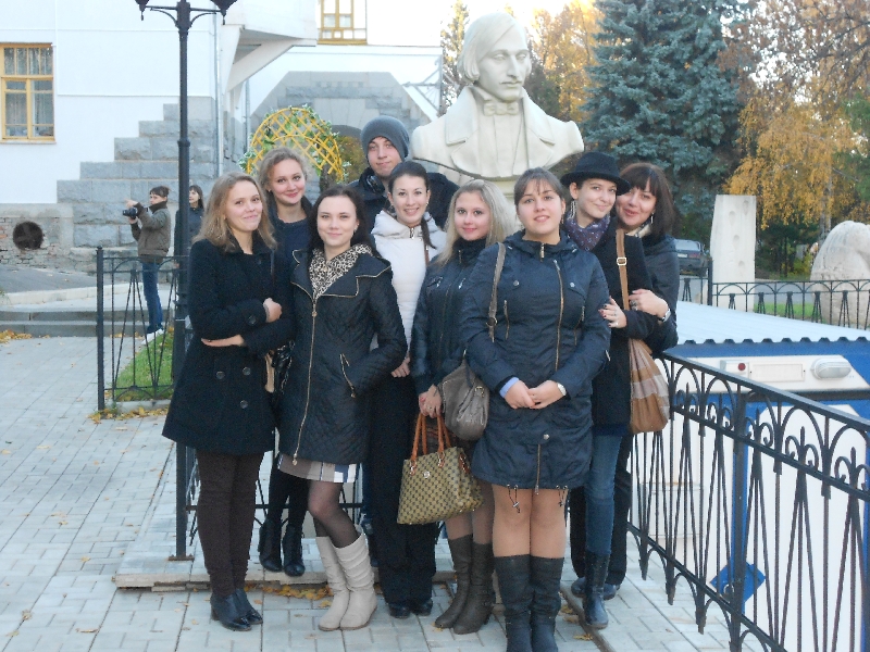 Группа 12ИПР1 (направление подготовки «Русский язык, литература и журналистика») посвятила один из последних солнечных осенних дней прогулке по родному городу. Экскурсию по историческому центру г. Пензы провела куратор группы – ст. преподаватель кафедры «Русский язык и методика преподавания русского языка» Н. С. Куприянова. Студенты узнали старинные названия знакомых улиц, обратили внимание на здания постройки ХVIII –ХIХ вв., вспомнили знаменитых личностей (М. Ю. Лермонтова, В. Г. Белинского, К. А. Савицкого, В. В. Маяковского, В. Э. Мейерхольда и др.), которые так или иначе связаны с Пензой – родились, учились, работали или бывали здесь. Удалось даже разыскать памятник Н. В. Гоголю, известный далеко не всем пензенцам, и увидеть горельефы, посвящённые героям «Ревизора» и «Мёртвых душ».