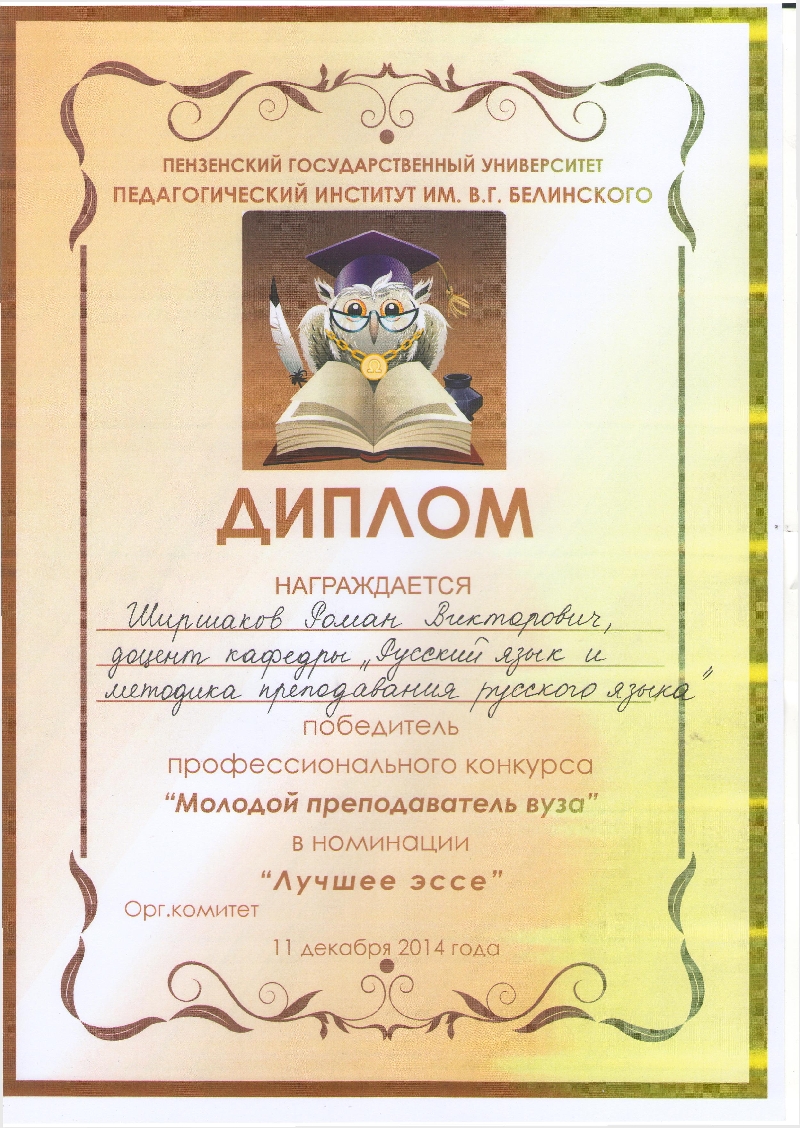 Поздравляем доцента кафедры Романа Викторовича Ширшакова, занявшего III место в профессиональном конкурсе «Молодой преподаватель вуза»!