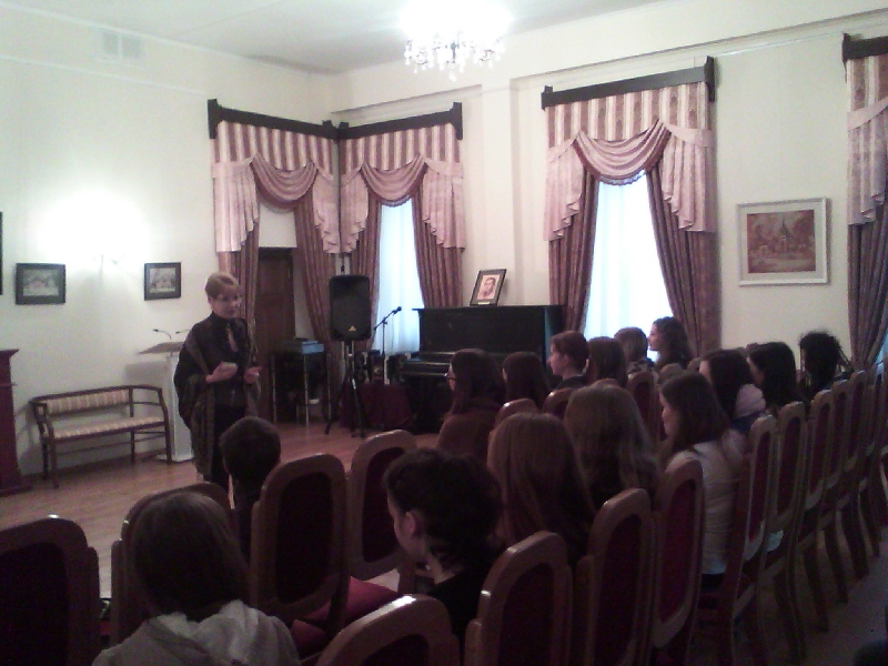 Во время экскурсии, которая началась в литературном салоне, лектор-экскурсовод Т. В. Устимкина рассказала студентам о самом здании музея, начавшего свою историю в конце 18 века как одно из первых учебных заведений Пензы, и великих гражданах России, которые так или иначе связаны с ним – В. Г. Белинском, Ф. И. Буслаеве, И. И. Лажечникове, М. М. Сперанском, М. Е. Салтыкове-Щедрине и др.