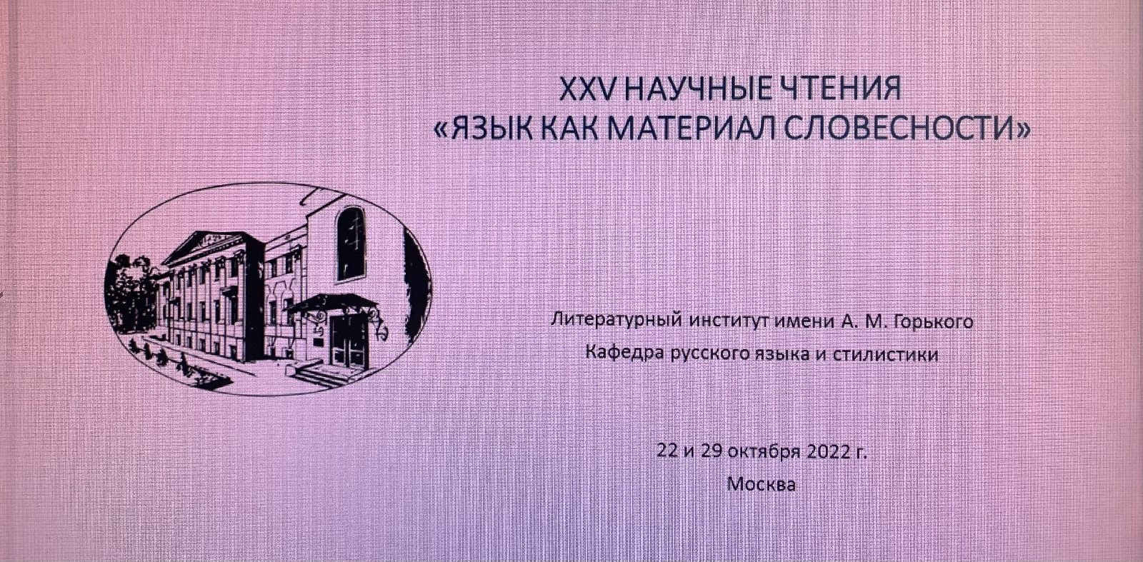 22 и 29 октября 2022 года и. о. заведующего кафедрой И. Г. Родионова принимала дистанционное участие в ХХV ежегодных научных чтениях «Язык как материал словесности», организованных кафедрой русского языка и стилистики Литературного института имени А. М. Горького (г. Москва). Неофициальное название этого научного мероприятия – «Горшковские чтения» – в честь их учредителя, специалиста по истории русского языка и теории литературного языка, доктора филологических наук, профессора Александра Ивановича Горшкова, которому в августе 2022 года исполнилось 99 лет.