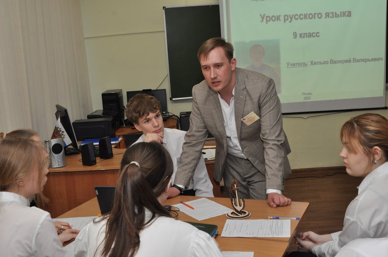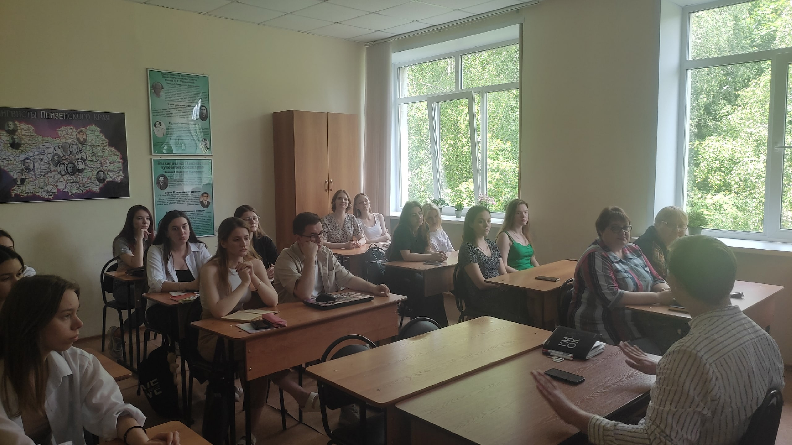 27 мая на историко-филологическом факультете в рамках Года педагога и наставника состоялась встреча студентов четвёртого курса с учителем русского языка и литературы средней общеобразовательной школы №77 города Пензы, призёром городского конкурса педагогических работников муниципальных общеобразовательных учреждений города Пензы «Молодой учитель – 2023», выпускником Пензенского государственного университета Валерием Валерьевичем Хилько.