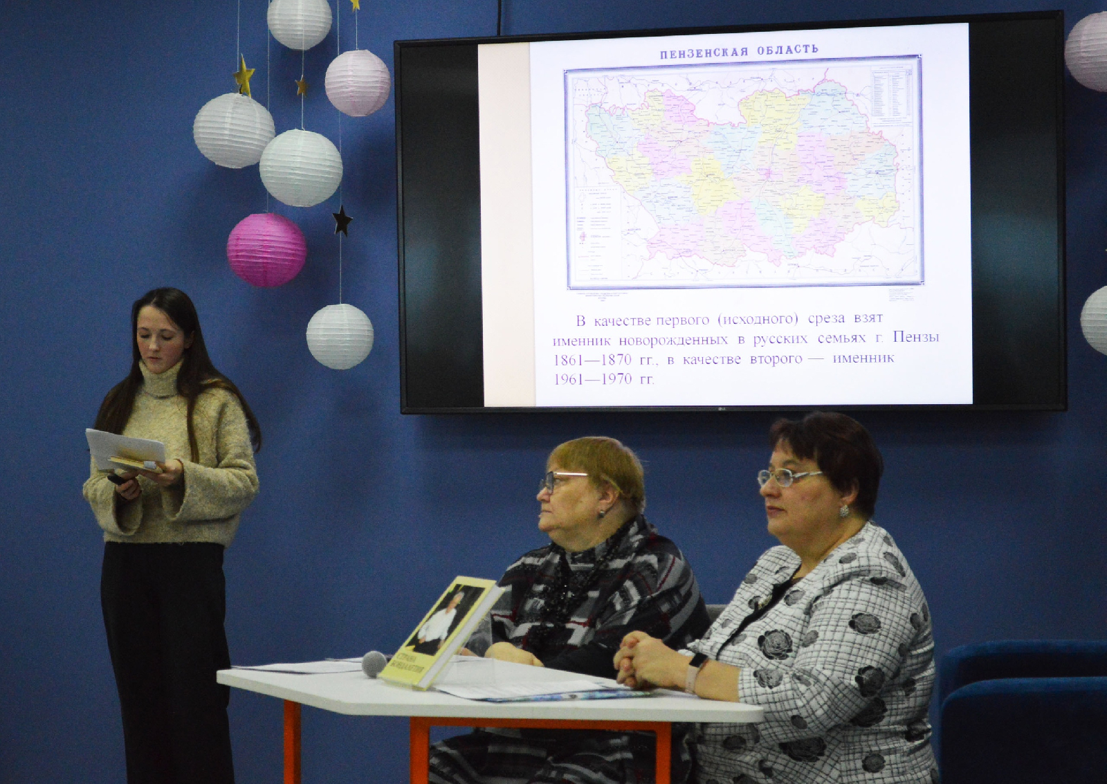 Презентацию провели Инесса Геннадьевна Родионова, зав. кафедрой «Русский язык и методика преподавания русского языка» Пензенского государственного университета, и Людмила Борисовна Гурьянова, старший преподаватель этой кафедры. Инесса Геннадьевна рассказала слушателям о жизненном пути Василия Даниловича Бондалетова, о его научных интересах. Сообщение Людмилы Борисовны было посвящено современным тенденциям развития ономастики – одного из направлений научной деятельности учёного.