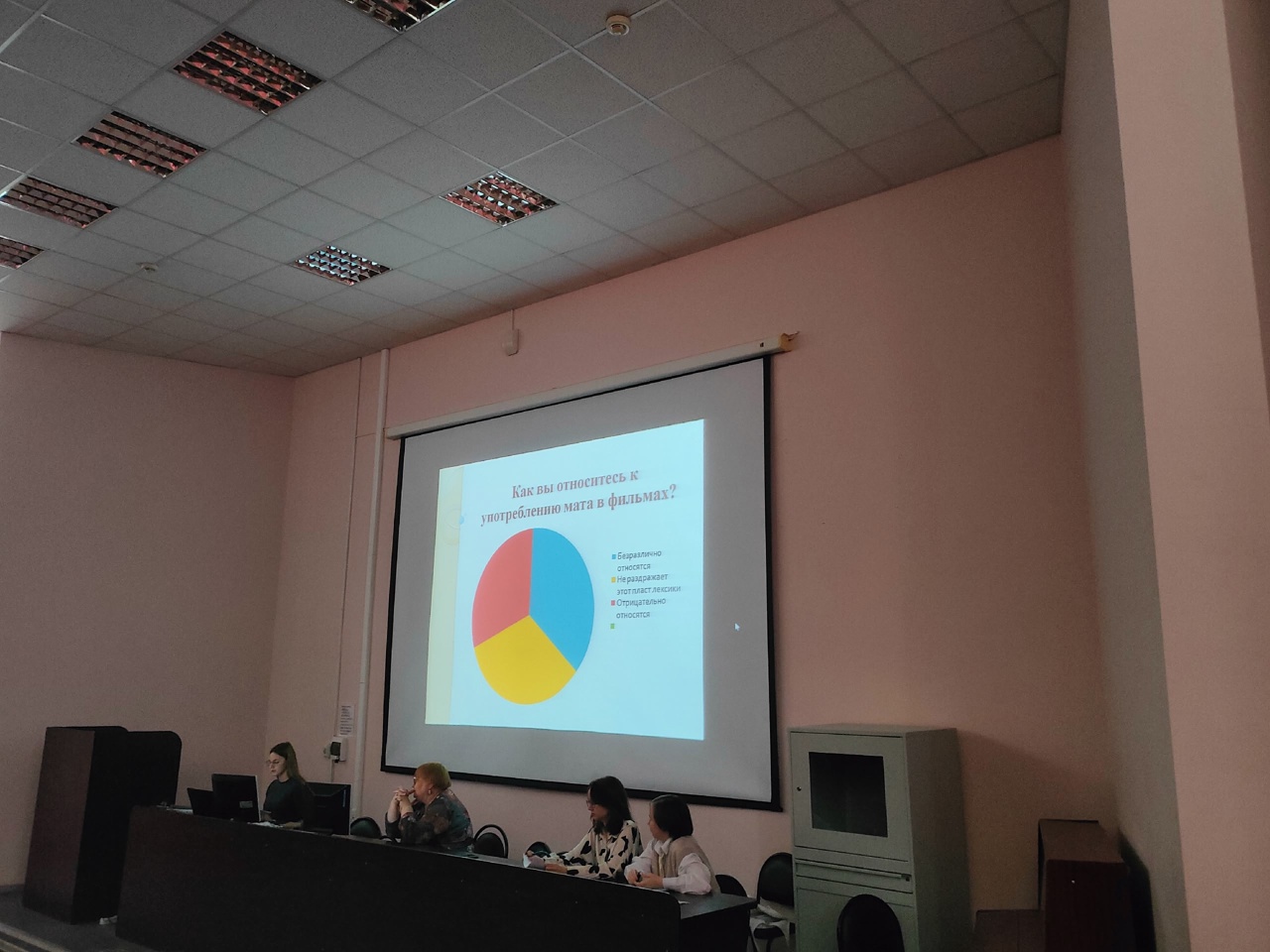 К. Власова рассказала об отношении к сквернословию известного знатока русского языка В. И. Даля. Д. Фалалеева познакомила присутствующих с результатами анкетирования школьников и студентов и с их отношением к данной лексике. В. Чертина поделилась информацией о языке пьес, адресованных современной молодежи, который не всегда соответствует нормам русского литературного языка.