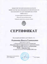 Конференция была посвящена 200-летию со дня рождения М. Ю. Лермонтова. И. Г. Родионова выступила с докладом на тему «Развитие аналитических тенденций в...