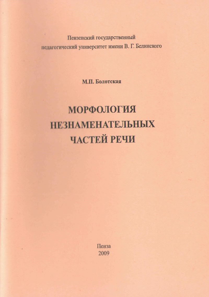 Болотская М. П. Морфология незнаменательных частей речи: Учебно-методическое пособие. - Пенза: ПГПУ им. В. Г. Белинского, 2009. - 80 с.