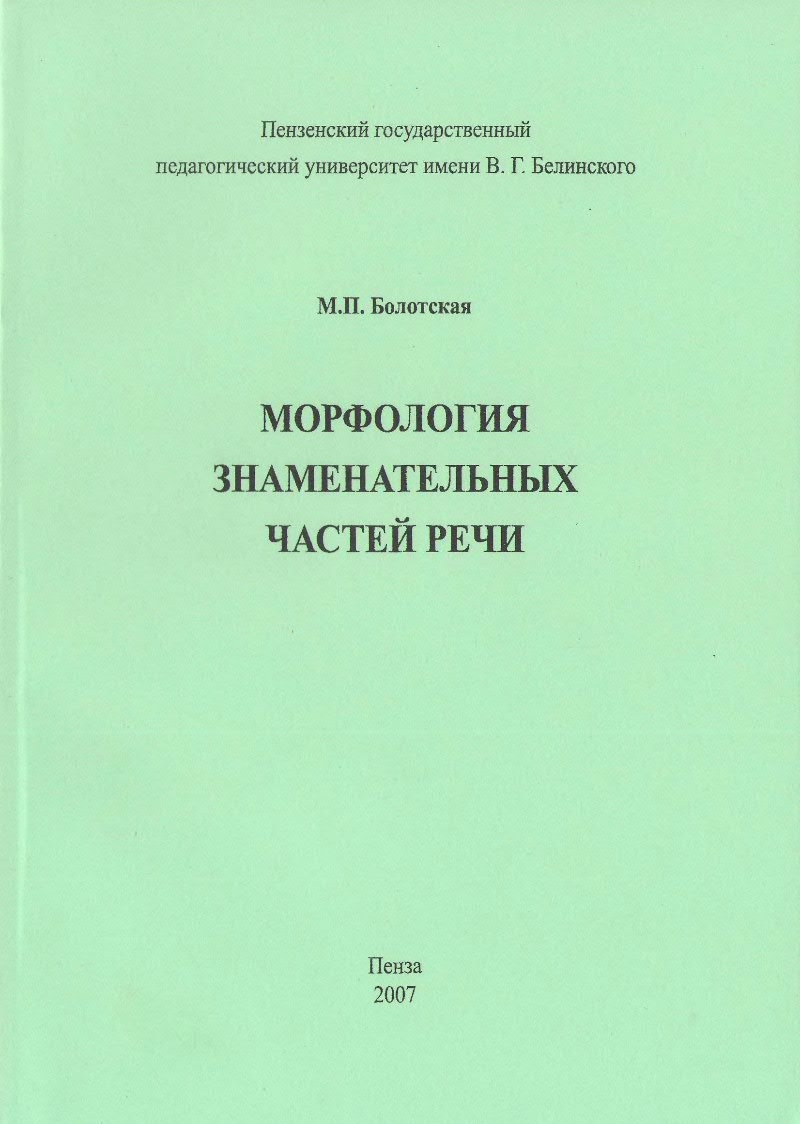 Болотская М. П. Морфология знаменательных частей речи: Учебно-методическое пособие. - Пенза: ПГПУ им. В. Г. Белинского, 2007. - 160 с.